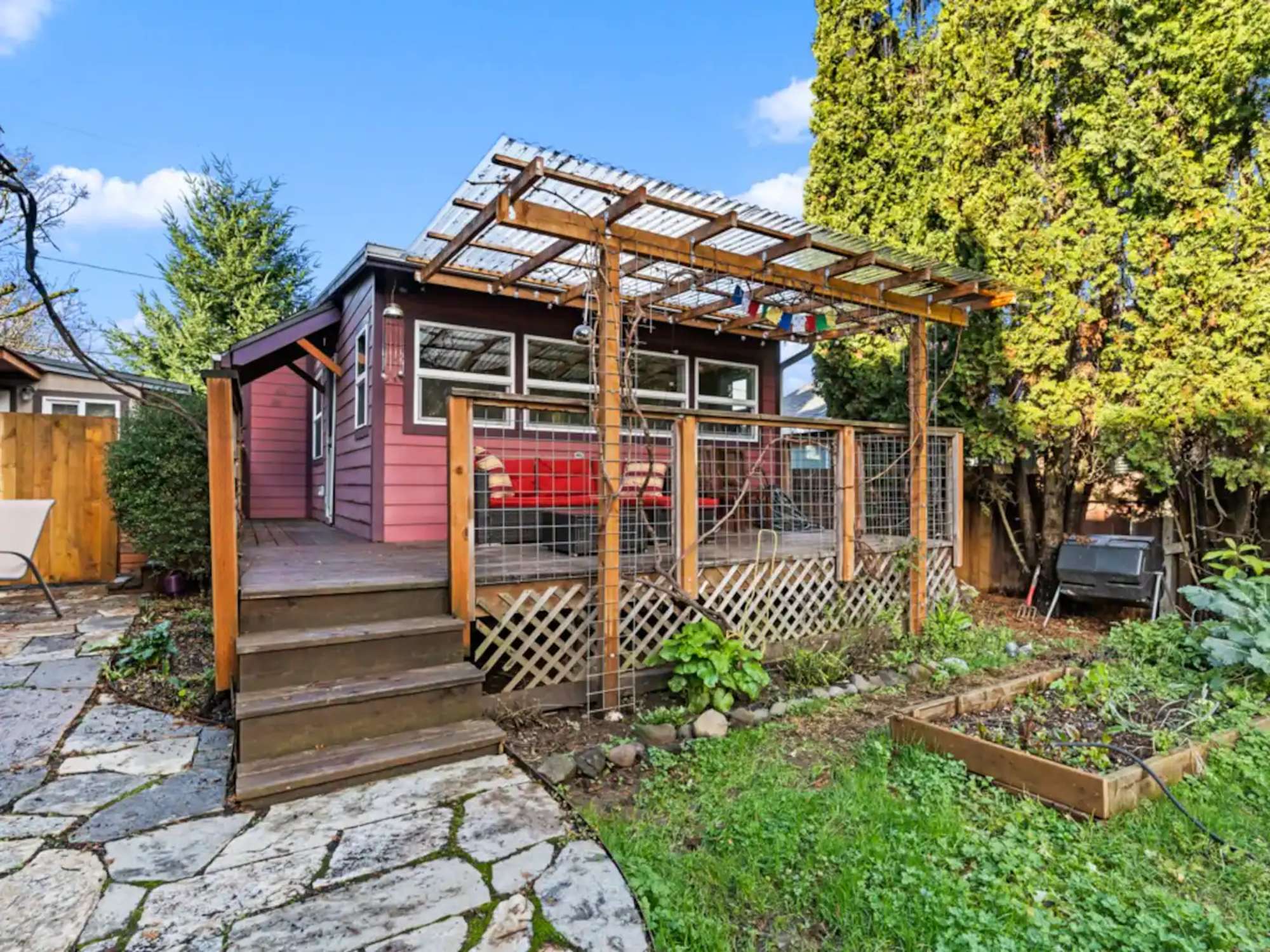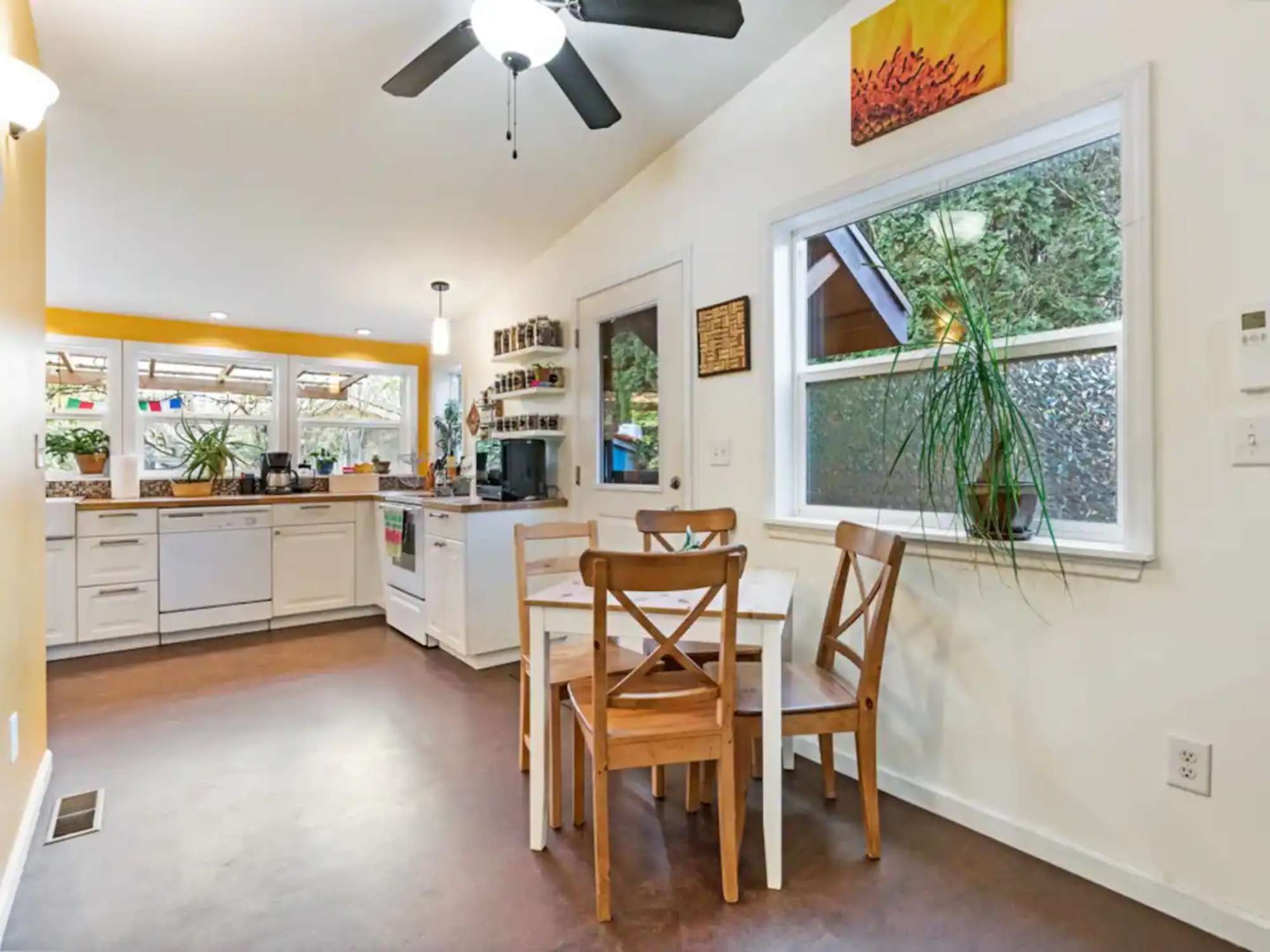 There is a spacious kitchen, but if you prefer to eat out, you’ll be walking distance to food cart pods and shops. The back deck is the perfect spot to enjoy your morning coffee or tea.