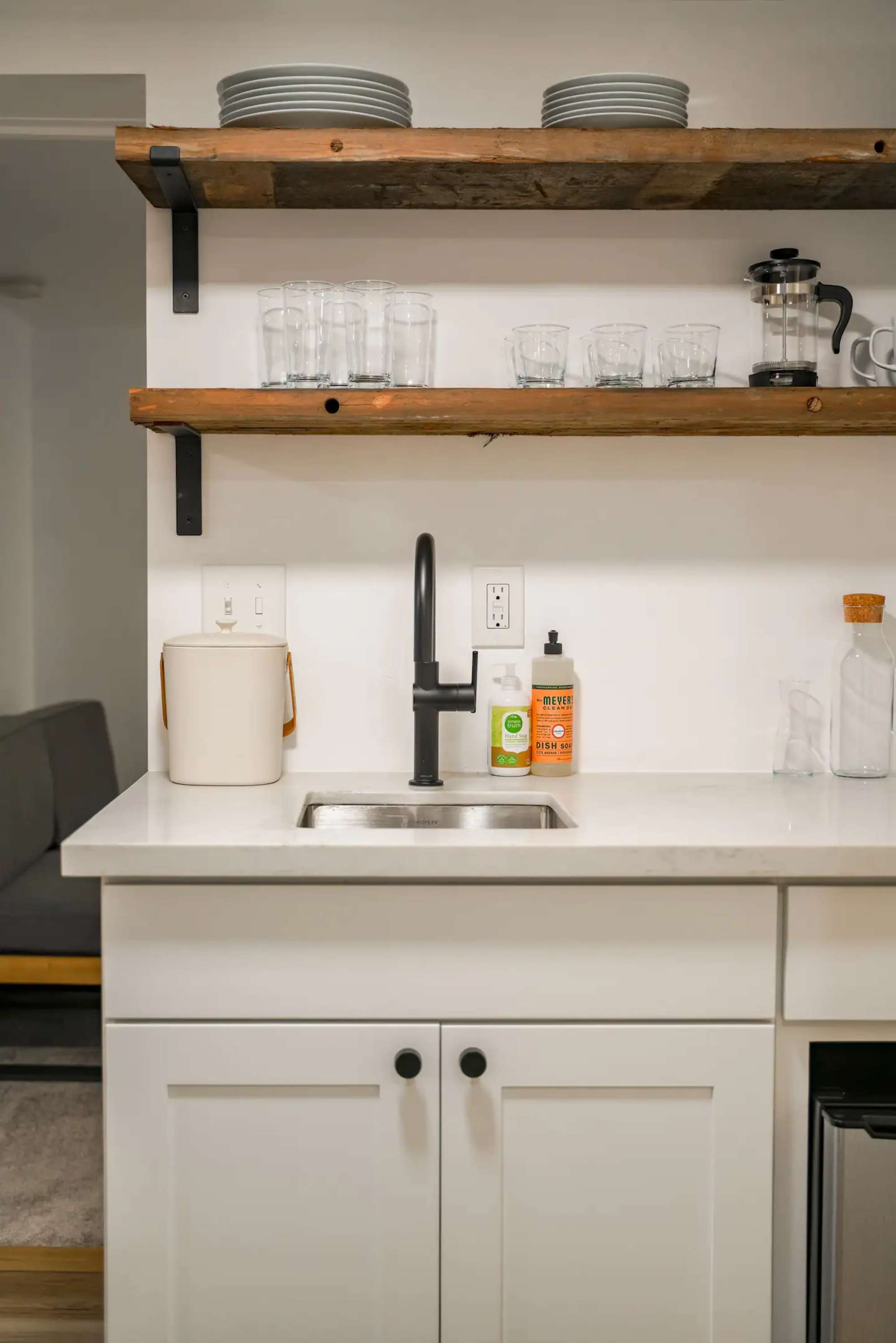If you’d like to warm up your lunch, the kitchen has a toaster oven, coffee maker, microwave, mini fridge and electric tea kettle and other essentials (but no stove or oven). Alternatively, you’ll be walking distance from the neighborhood cafes, breweries, restaurants & coffee shops if you prefer to go out for lunch.