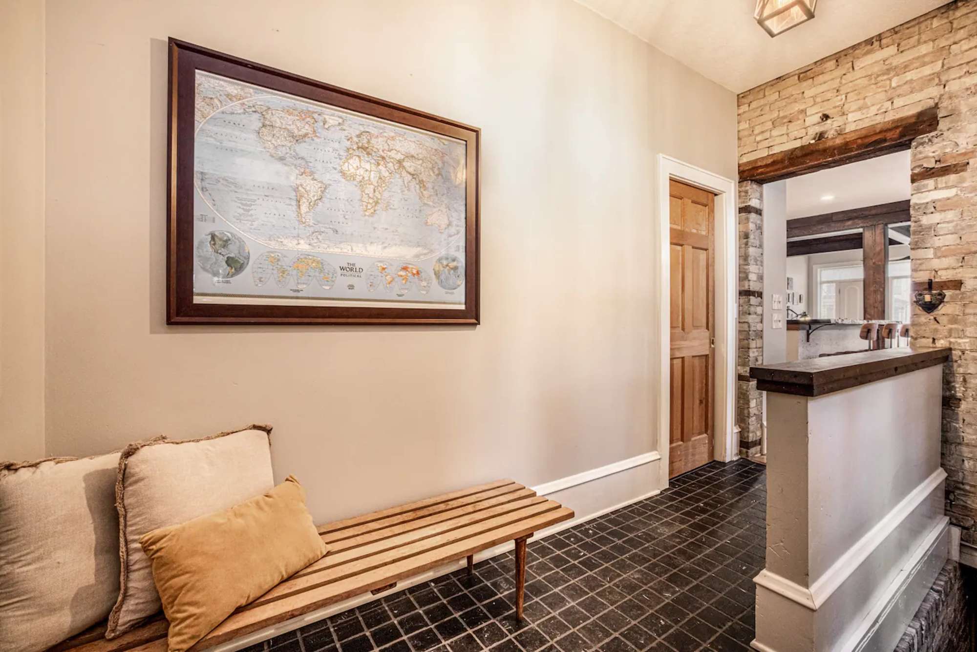This is a combo listing of two family homes built of Cream City brick in 1858. They are truly two of the oldest standing houses in Milwaukee. The main floor features an open concept which is perfect for larger groups who want to work together while also having space to spread out. Two homes means 2 kitchens and 3.5 baths, so this home can accommodate groups of all sizes. There are two desks for solo work and plenty of meeting spaces for the team to collaborate. There is free street parking and one off-street parking spot. The kitchens both have cute eat-in counters that are perfect for lunch breaks. However, if you want to go out for lunch, you'll be just one block north of the original Schlitz Brewery! The home has a stamped concrete patio which is shared with the other unit on the property and is a great spot for outdoor meetings in the fresh air. If you would like to book the smaller house (good for up to 5 people) click here: https://radious.pro/listing-details-guest/utwioivqfbrisvxxnn